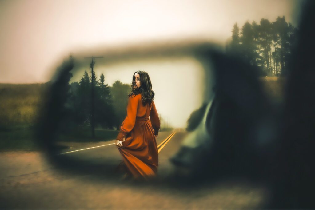 After hearing her perspective, I shared mine: I created the second road using a prism. Right away I thought of internal conflict between options, generally, and more specifically, one option already established and the other self created. After adding the portraits I see the girl on the left is static, lacks clarity of vision in this path. In the path that I created, she is in motion. Her vision is more clear here though the path is not as predictable.