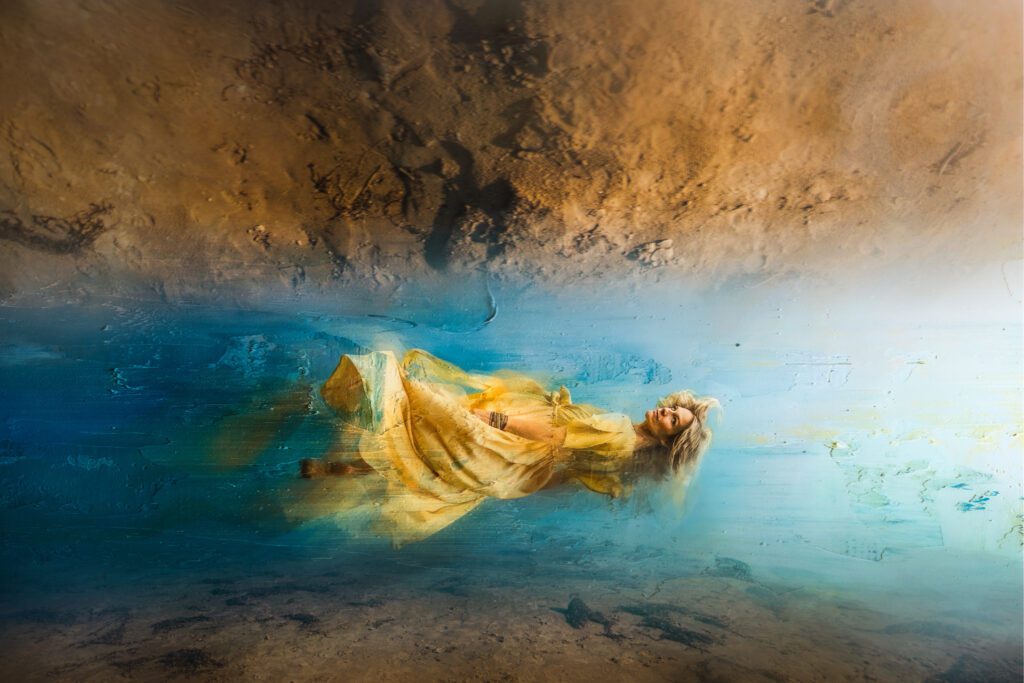I went back to the session with the yellow dress and pulled another image. This one, with the movement in her hair, might work if I place her floating in the water.