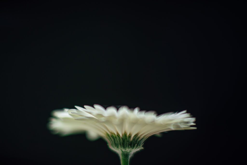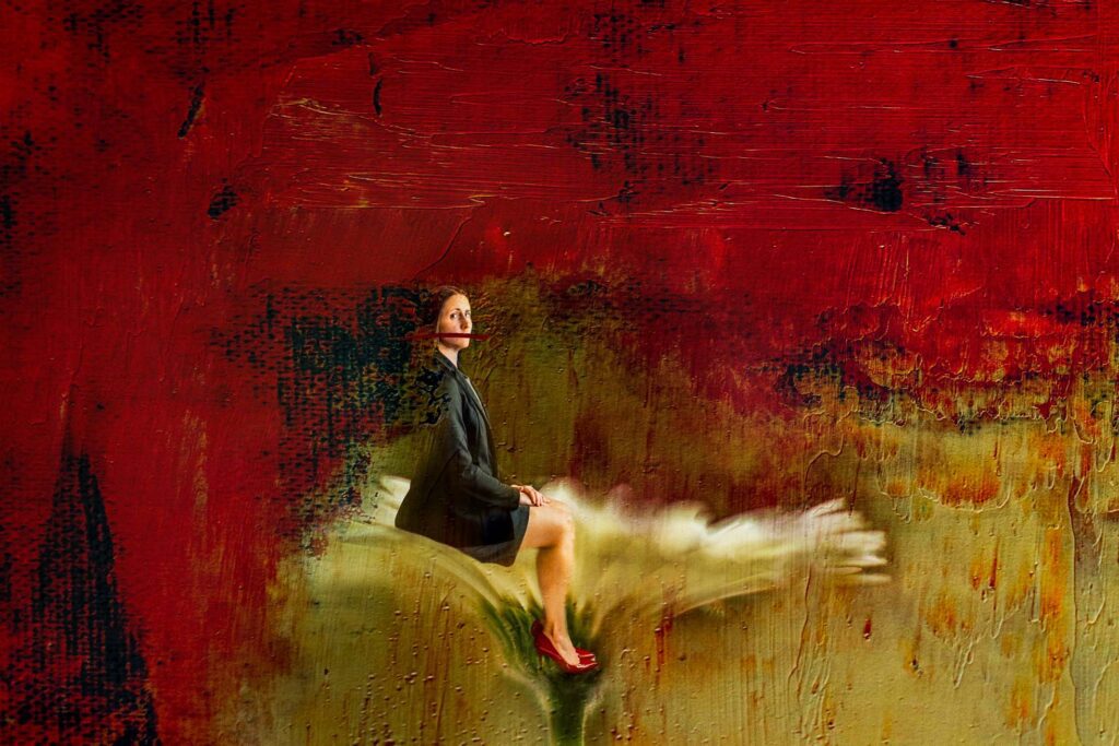 I started with this reverse freelensed flower image. I wanted to allow for something a little more unexpected, maybe even a little disorienting. When I was scrolling through my images, it was the gaze in the portrait that caught my attention. The gaze contrasted with the body posture.